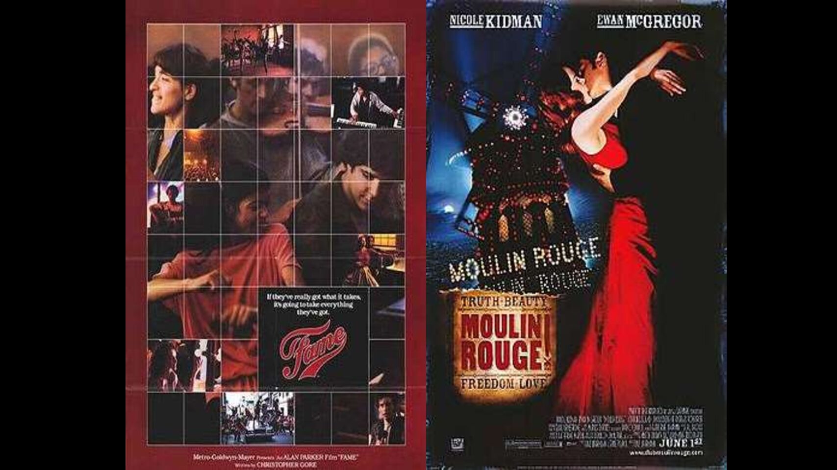 Filme: Moulin Rouge, 2001 Direção: Baz Luhrmann Música: Elephant Song Medley Intérpretes: Ewan McGregor e Nicole Kidman https://www.youtube.com/watch?v=Y0OVtzI7jSk Filme: Fama,…