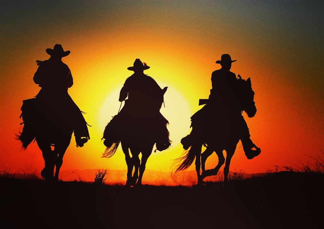Uma imagem importante do faroeste americano: O vilão (à esquerda), o democrata (no meio) e o vaqueiro (à direita)